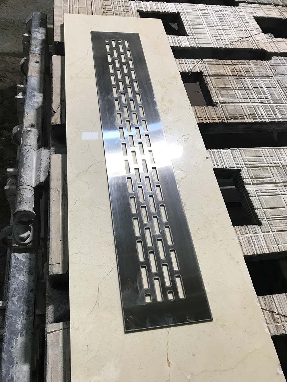 Гидроабразивная резка решетки душевого трапа толщиной 2 мм из нержавеющей стали