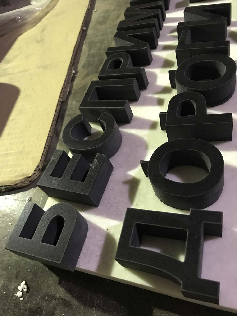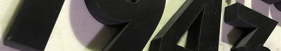 Раскрой буква и цифр из кварцита черного цвета толщиной 20 мм
