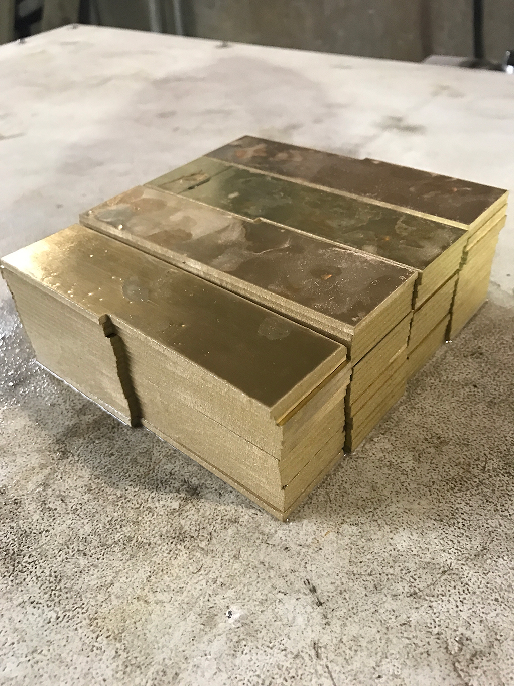 Раскрой пластин из латуни толщиной 2,5 мм. Гидроабразивная резка.