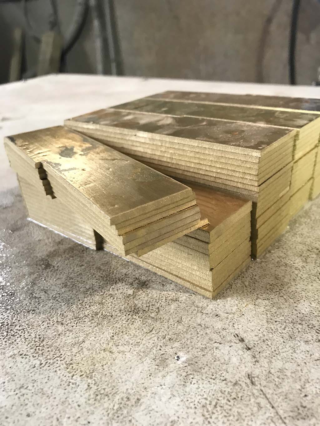 Гидроабразивная резка деталей из листов латуни толщиной 2,5 мм.