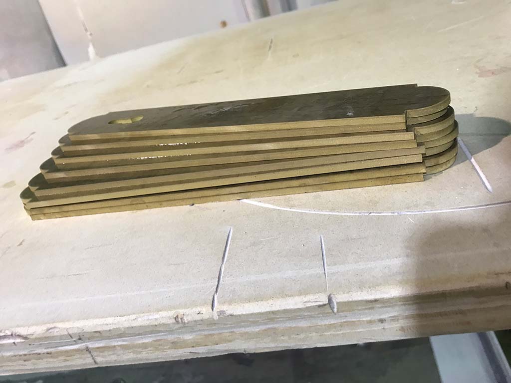 Раскрой накладок для замков из латуни толщиной 4 мм на станке гидроабразивной резки