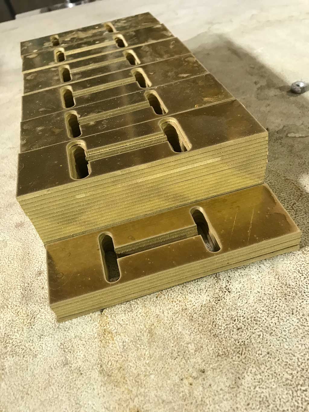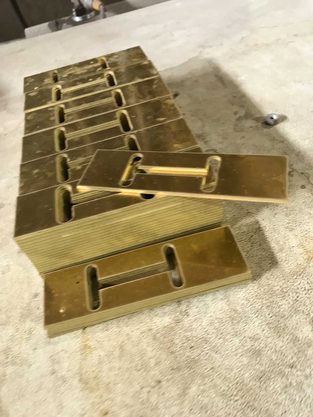 Гидроабразивная резка шпингалетов из листа латуни толщиной 2 мм