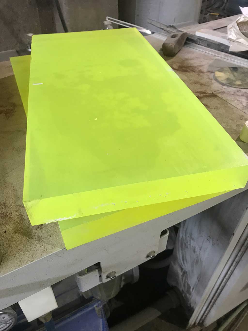 Раскрой листа полиуретана толщиной 40 мм гидроабразивной резкой