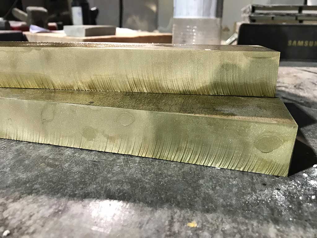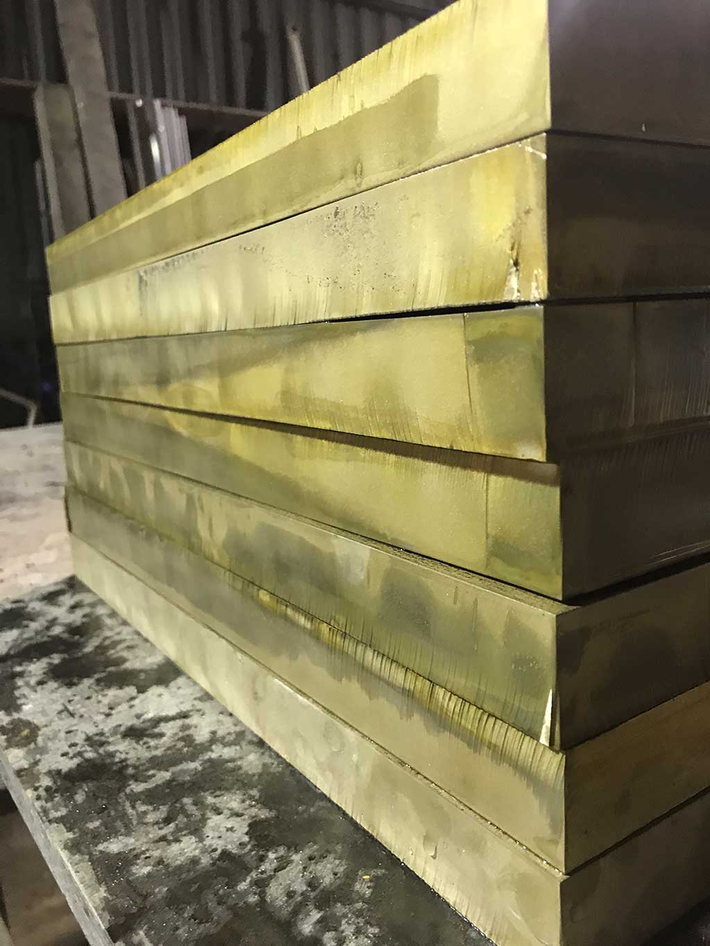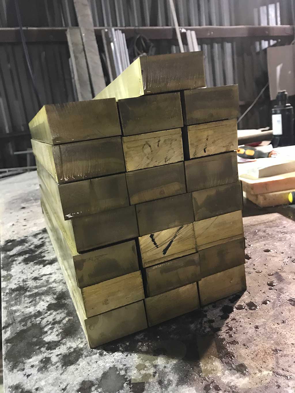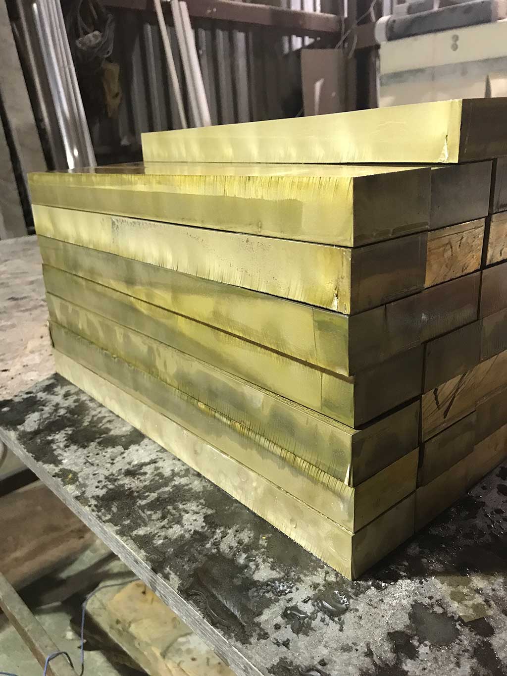 Раскрой листа бронзы толщиной 30 мм. Гидроабразивная резка.