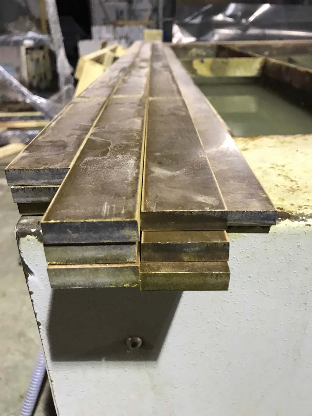 Лист латуни толщиной 10 мм. Раскрой листа на полоски. Гидроабразив.